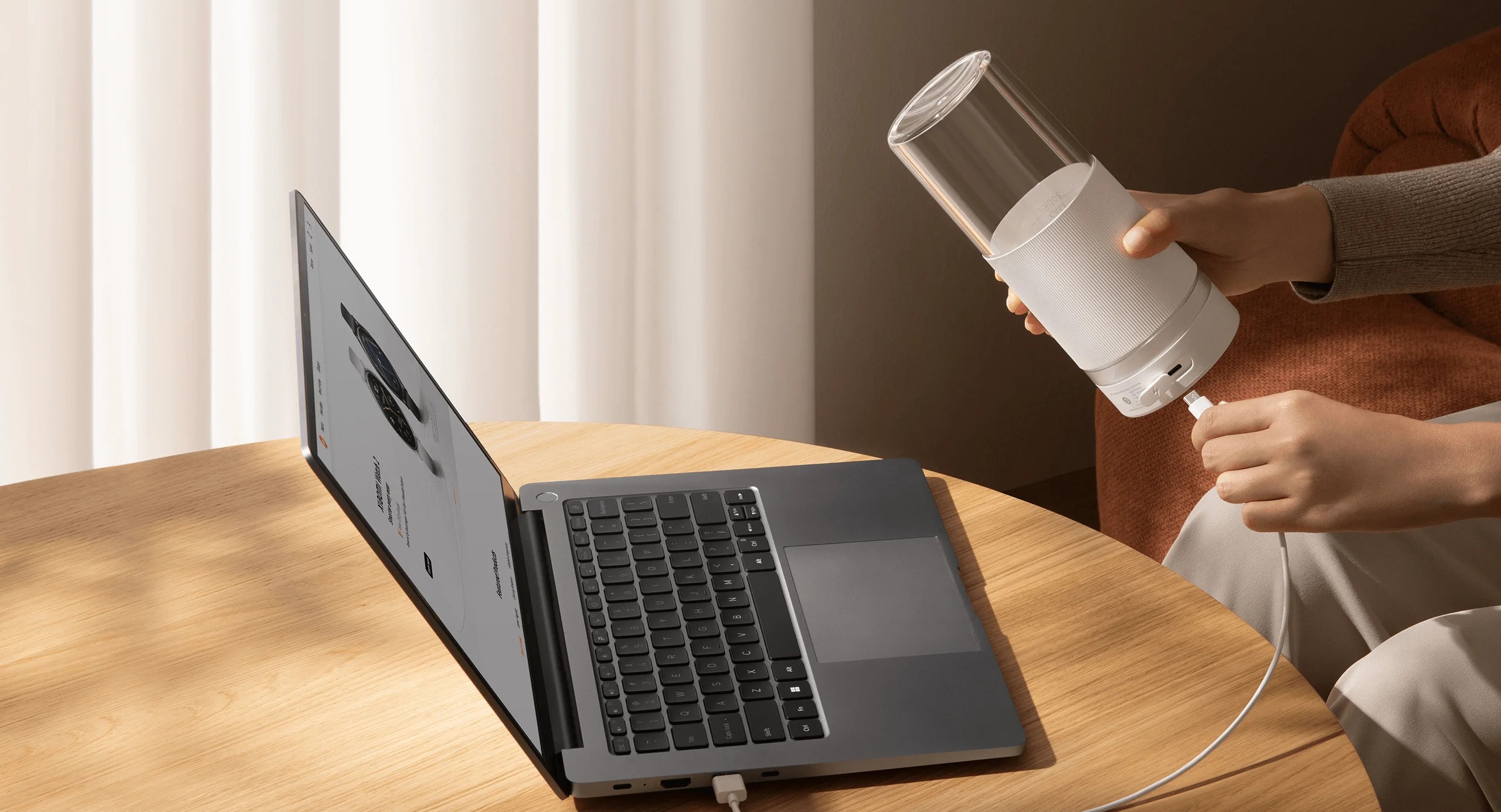 Блендер оснащен аккумулятором ёмкостью 1300 мАч, позволяющим приготовить до 12 чашек стаканов сока на одной зарядке. Порт Type-C обеспечивает универсальность в зарядке: устройство может быть легко подключено к внешним аккумуляторам, автомобильным зарядным устройствам или USB-портам компьютеров. Эта особенность делает его идеальным выбором для активных людей, которые ценят мобильность и гибкость.