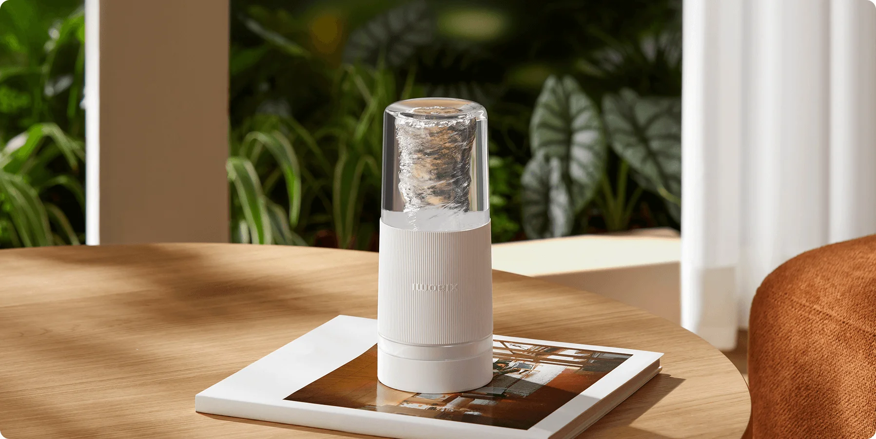 Блендер отличается компактным дизайном в виде стакана ёмкостью всего 300 мл, что позволяет легко носить его с собой в сумке или рюкзаке, а уплотнительное кольцо делает устройство полностью герметичным. Возможность работы от встроенного аккумулятора добавляет дополнительную портативность, позволяя наслаждаться свежими напитками в любом месте и в любое время.