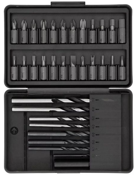 Комплектация Дрель-шуруповерт, сумка для хранения, адаптер питания, кабель для зарядки USB Type-C, контейнер для хранения бит, сверло 8 шт., биты 24 шт., удлинитель бит, документация