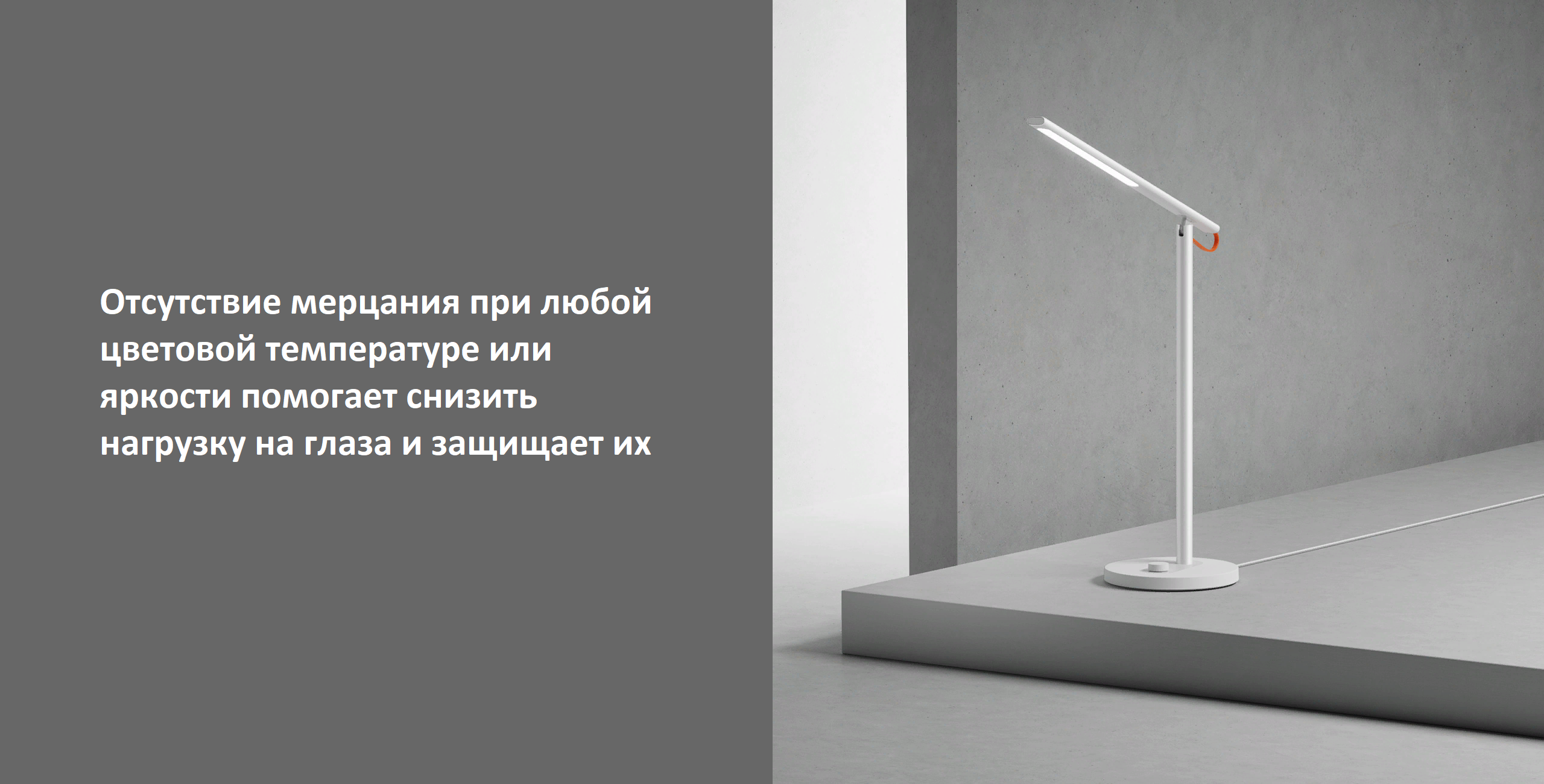 Настольная светодиодная лампа Mi 1S работает без мерцания и снижает нагрузку на глаза посредством встроенного диммера и технологии широтно-импульсной модуляции (ШИМ) даже на низких уровнях яркости.