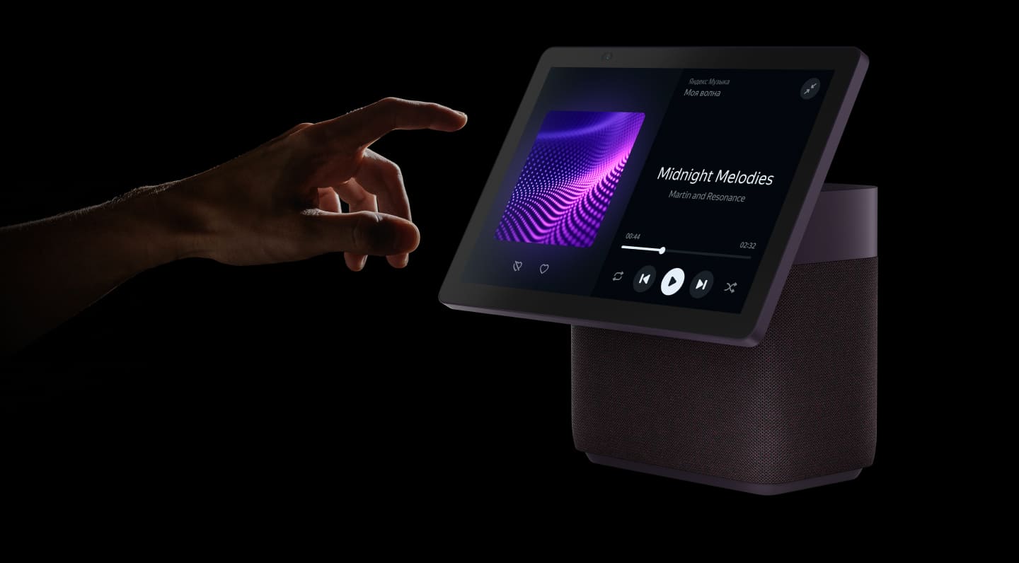 Поворотный FullHD экран с сенсорным управлением и встроенной видеокамерой выводит взаимодействие с виртуальным помощником на новый уровень. На дисплее отображается текущая дата и время, прогноз погоды. Здесь можно управлять настройками Умного дома, совершать видеозвонки, смотреть видеоответы от Алисы. Просматривайте любой контент от уведомлений приложений Яндекса до любимых фильмов и сериалов. Экран можно поворачивать в стороны, опускать и поднимать, регулируя наклон и угол обзора.