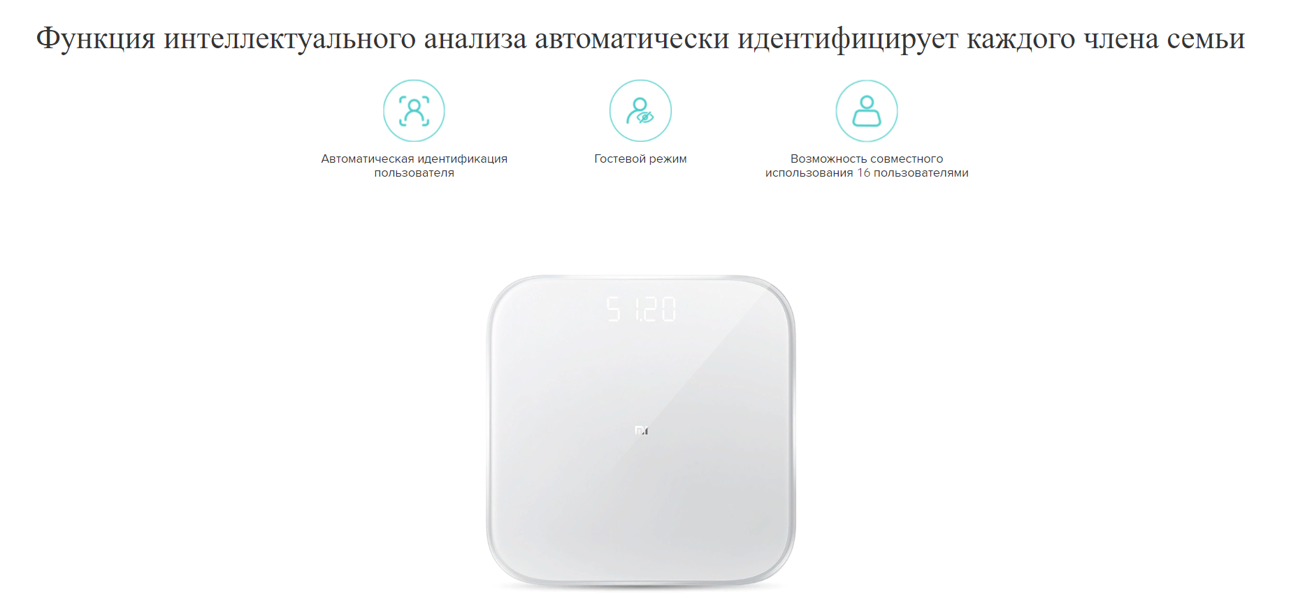 Функция интеллектуального анализа автоматически идентифицирует каждого члена семьиВесы Mi Smart Scale 2 могут автоматически идентифицировать членов семьи на основе данных тела и поддерживают до 16 пользователей, если устройство используется всей семьей. Также поддерживается гостевой режим, чтобы измерения других людей можно было выполнять без сохранения.